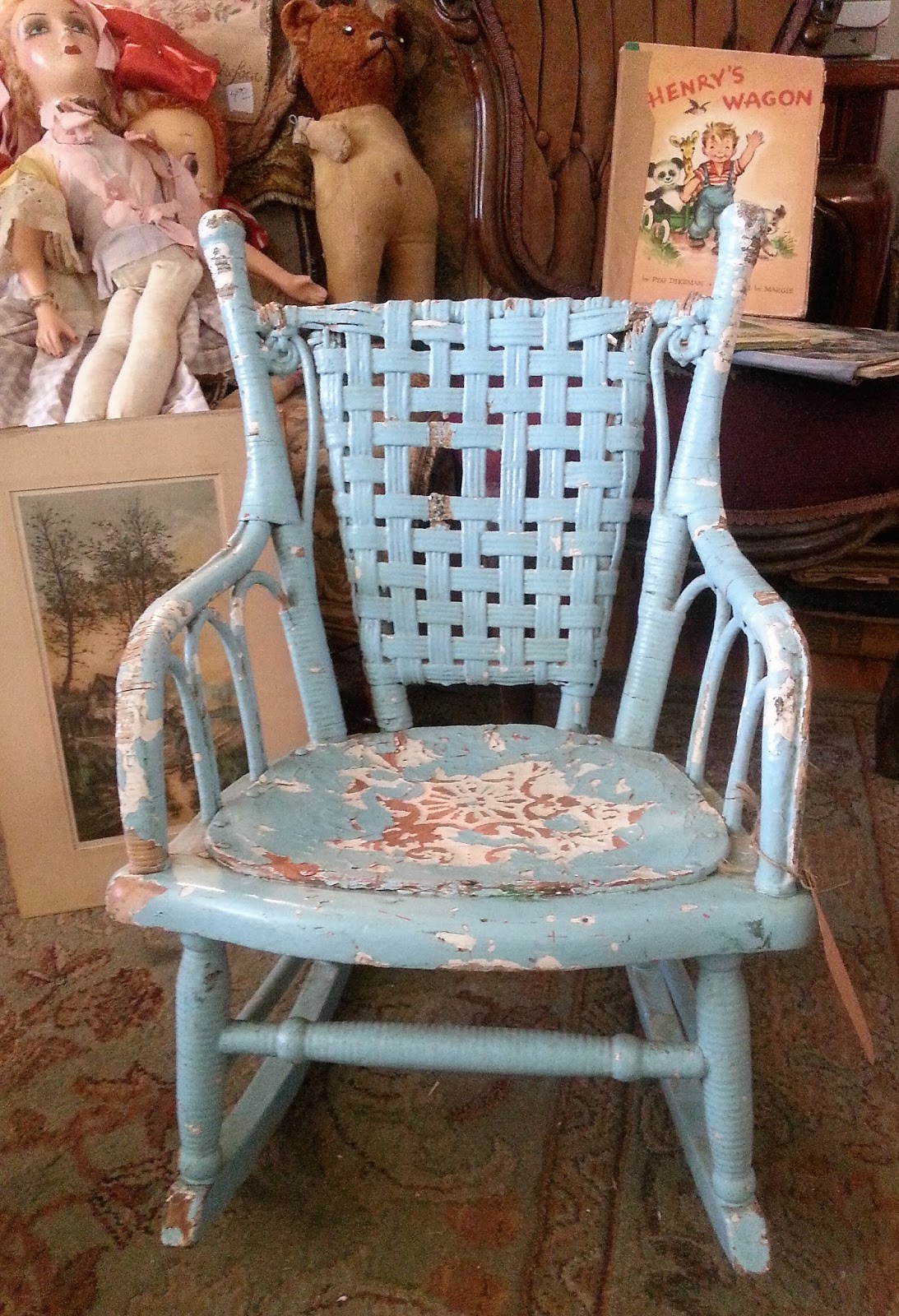 Wonderful vintage blue chippy child's rocker, great patina, works perfectly! $68